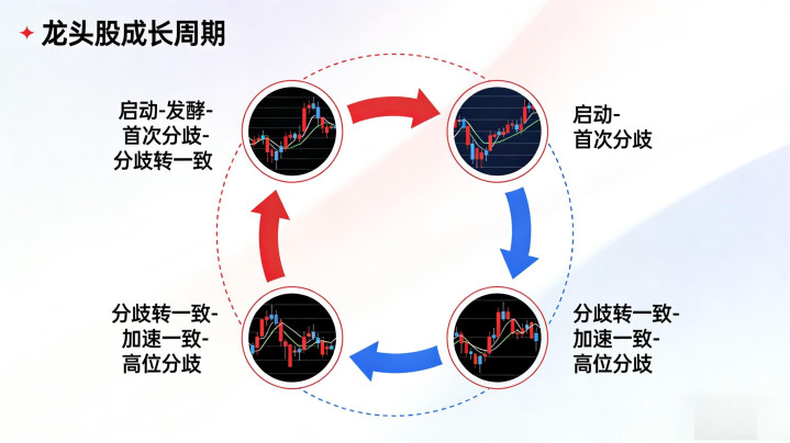 启动 -> 发酵 -> 首次分歧(关键买点) -> 分歧转一致(再次走强) -> 加速一致 -> 高位再度分歧(可能见顶)